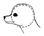 Chihuahua SKULL The most individual attribute of any breed tends to be the head; the Chihuahua is no exception. As a toy/lap/pet dog this individuality is a key function of the breed. The skull of the Chihuahua is of most unusual shape. The skull of 'basic dog' is like an elongated cube, with a bony occipital peak and a slight bony ridge along the centre line of the skull, where the plates of the cranium knit together. The Chihuahua, as a legacy of the dwarfing of the breed, has a large rounded baby-like skull. Mammalian babies tend to be born with disproportionately large heads (and eyes) which grow on more slowly than the rest of the animal. In the chi this largeness of head and eye is never completely lost. The large head of a whelp requires that the many bones which knit together to form the skull must be capable of movement at birth to allow the bitch to pass the head. In chis these bones do not always grow together as the head develops and changes shape during puppyhood. A small gap (molera) is left atop the skull where the bones fail to meet. Provided this gap is not large, and that there are not several gaps, the presence of a molera is of little significance. In many Chihuahuas the cranial plates do knit together, they should not however form a crest or ridge where they meet. In shape the skull should resemble an apple (a cooking apple is generally thought most descriptive), it should not be a perfect round (ball) shape. A round skull would lose breadth between the ears, and less room within the cranium. The eye sockets should be well protected with a bony surround, it is this protection of the eye sockets which lifts the front lobes of the skull and creates greater width at eye level. This protection also forms the basis for the required distinct stop. A round skull lacking this protection will either have small eyes, or 'frog' eyes which stick out. [ Next ]